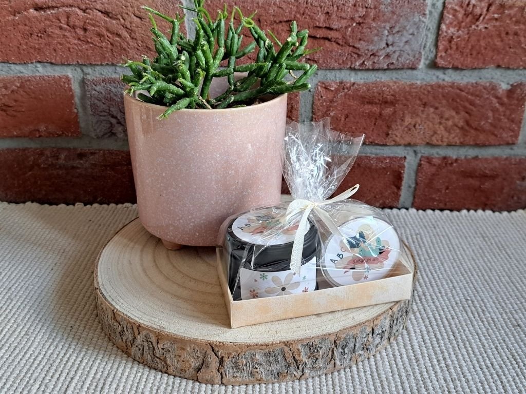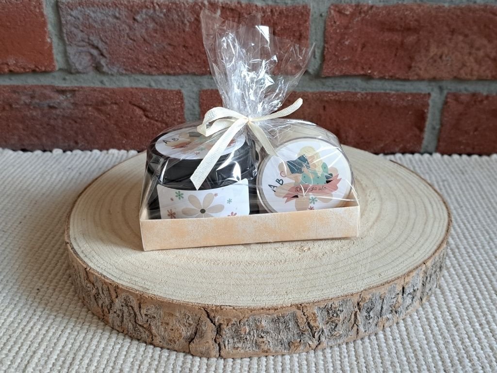 Rozměr balíčku: svíčka v černé plechovce - průměr 6 cm | výška 4,5 cm | + čajová svíčka - průměr 5,5 cm | výška 2,6 cm