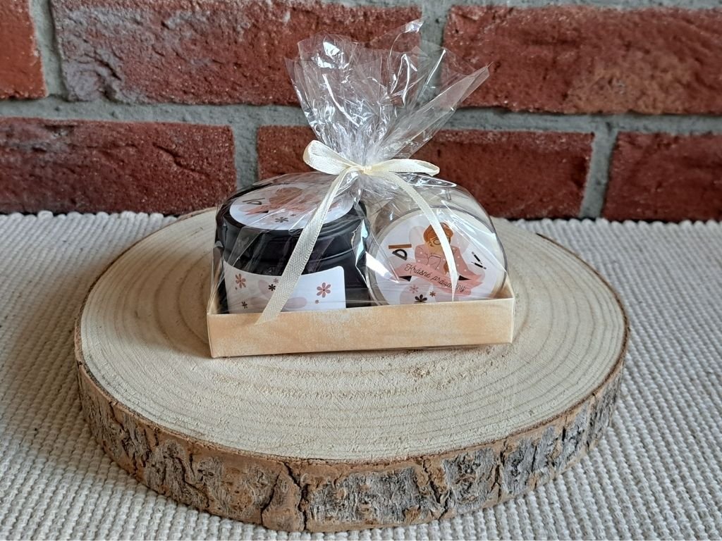Rozměr balíčku: svíčka v černé plechovce - průměr 6 cm | výška 4,5 cm | + čajová svíčka - průměr 5,5 cm | výška 2,6 cm
