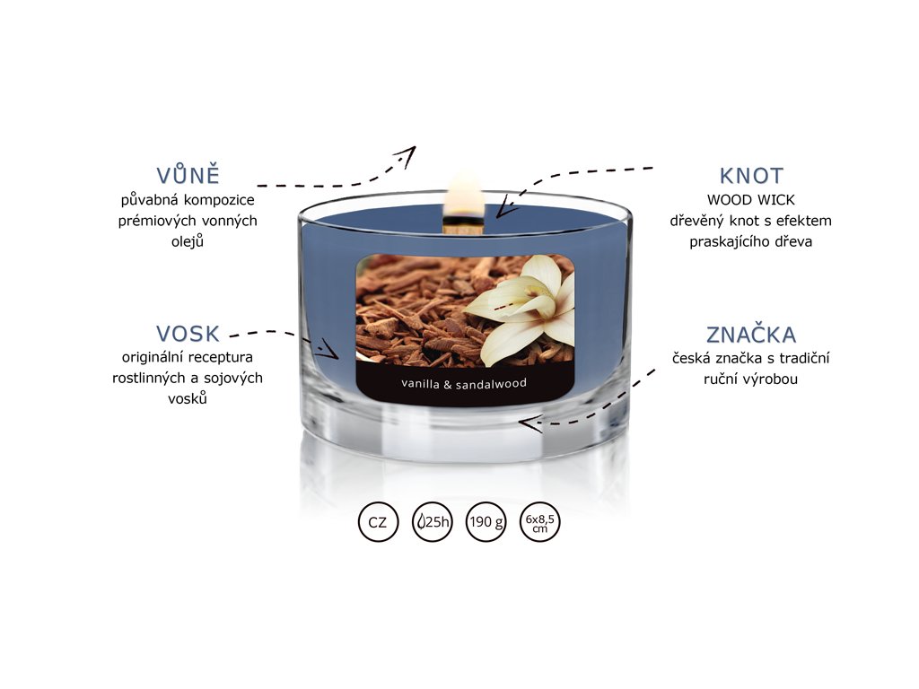 parfemace: svíčka s vysokou parfemací | 8-10% parfemace - Vanilla & Sandalwood
