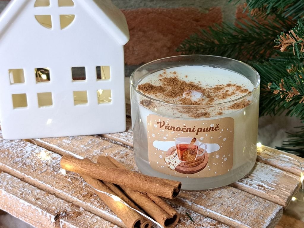 svíčka ve skle s dřevěným knotem | Vánoční punč