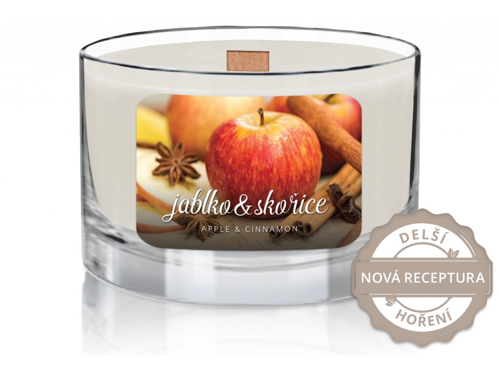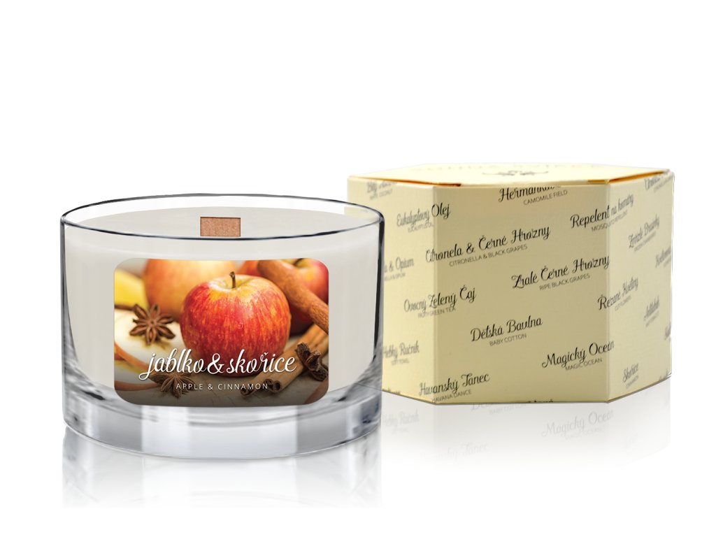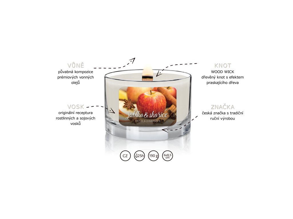 svíčka ve skle s dřevěným knotem | Jablko & Skořice