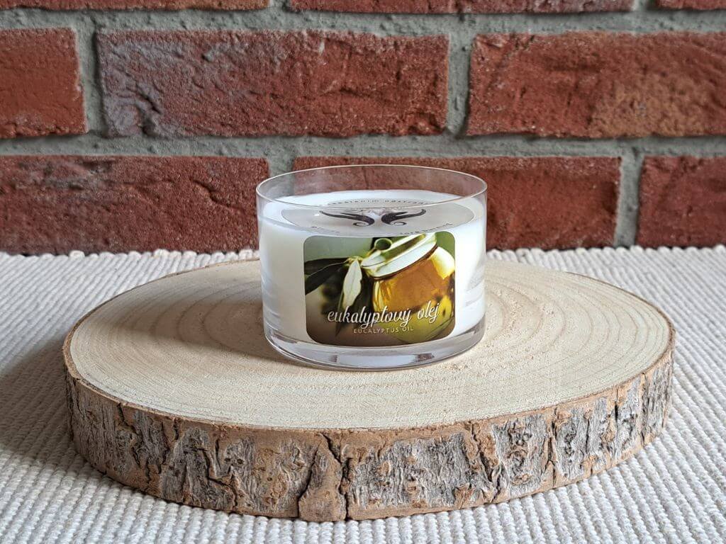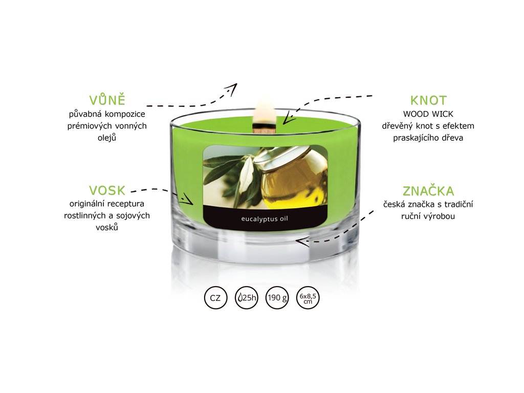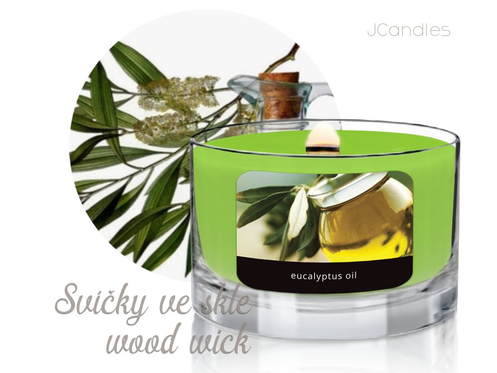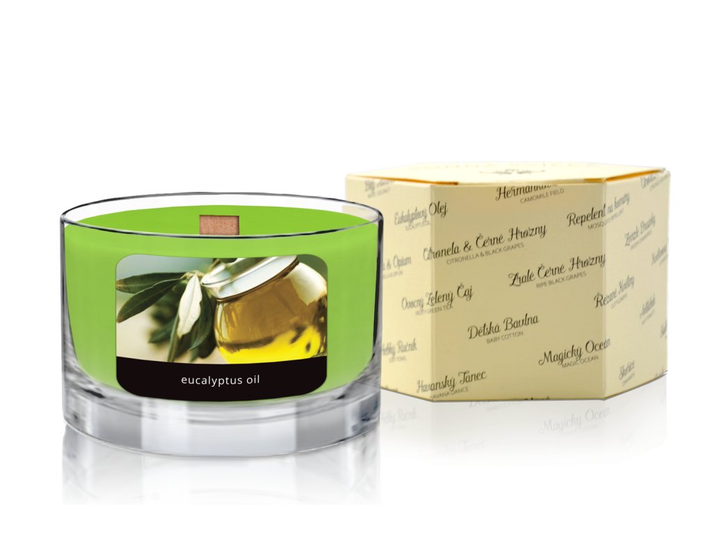 svíčka ve skle s dřevěným knotem | Eukalyptový olej