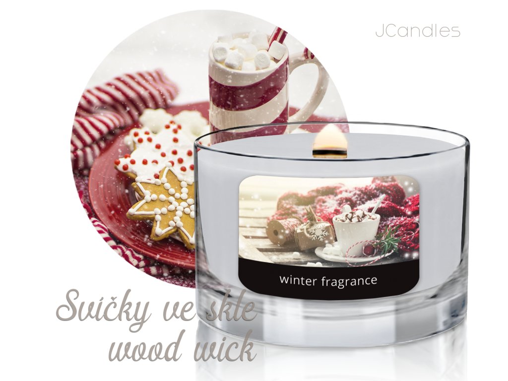 svíčka ve skle s dřevěným knotem | Zimní vůně