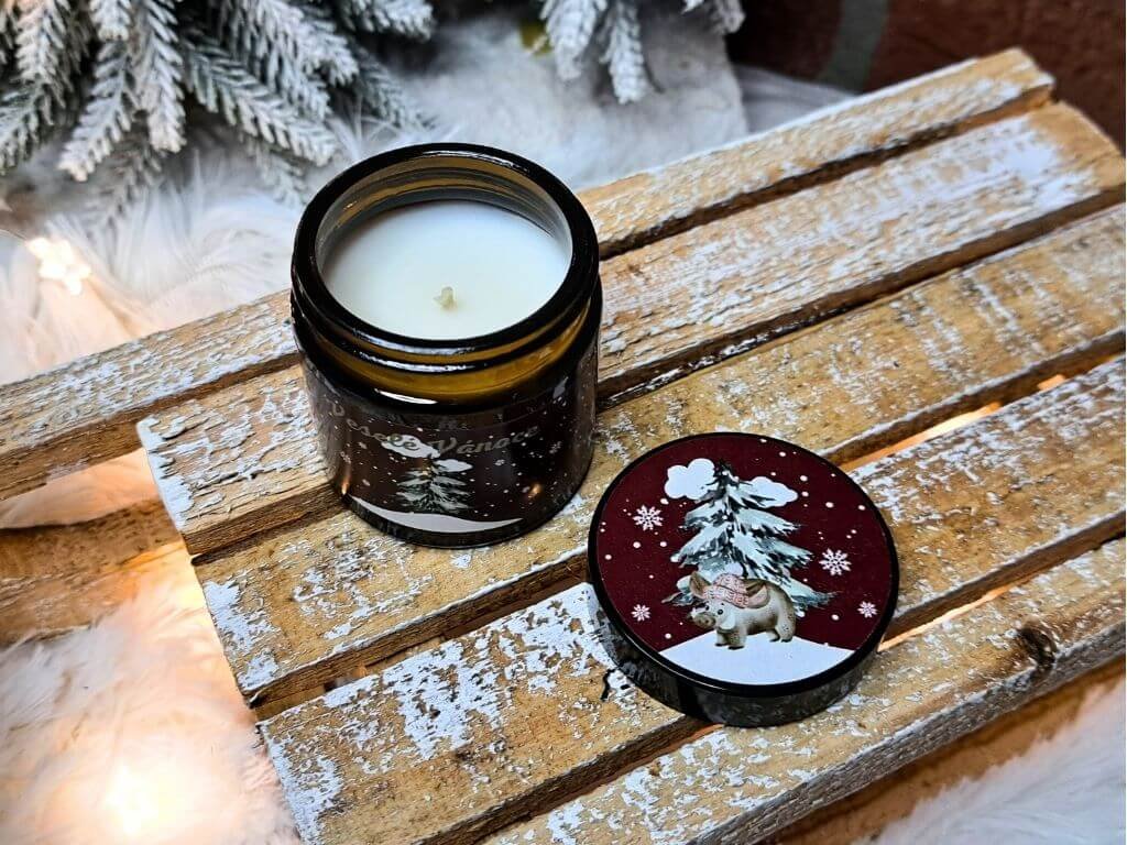 svíčka v hnědém skle kouzelný les 60 ml | prasátko