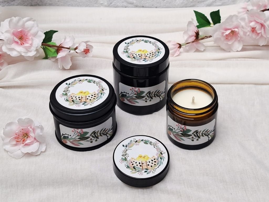 svíčka v černé plechovce velikonoční kolekce 100 ml | Kuřátka