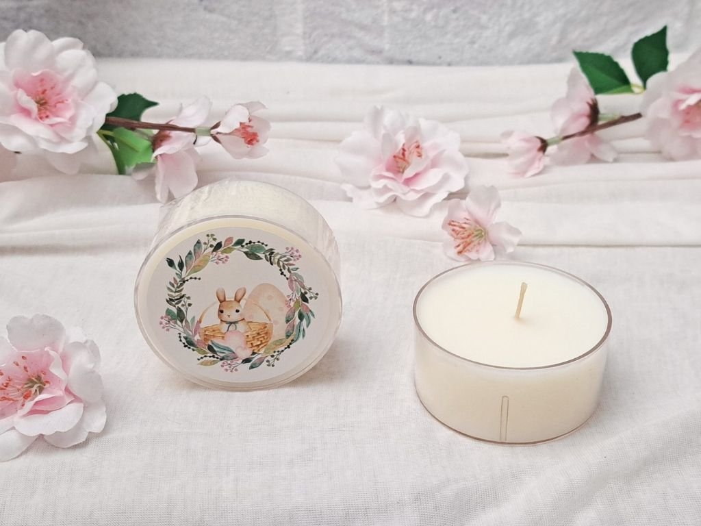 Ručně vyráběná svíčka z jarní kolekce je krásným doplňkem do obýváku i ložnice a potěší také jako milý velikonoční nebo jarní dárek.
