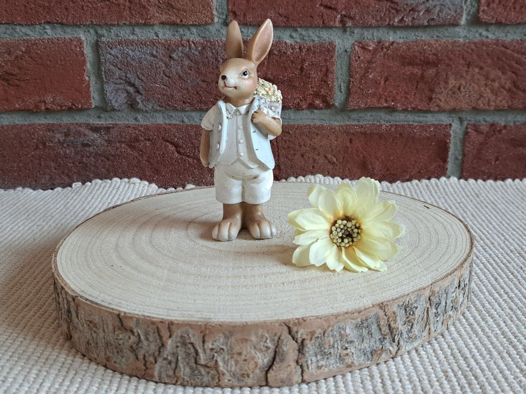 Přineste do svého domova velikonoční atmosféru s tímto půvabným zajíčkem. Perfektní na stůl, poličku nebo zahradní aranžmá.