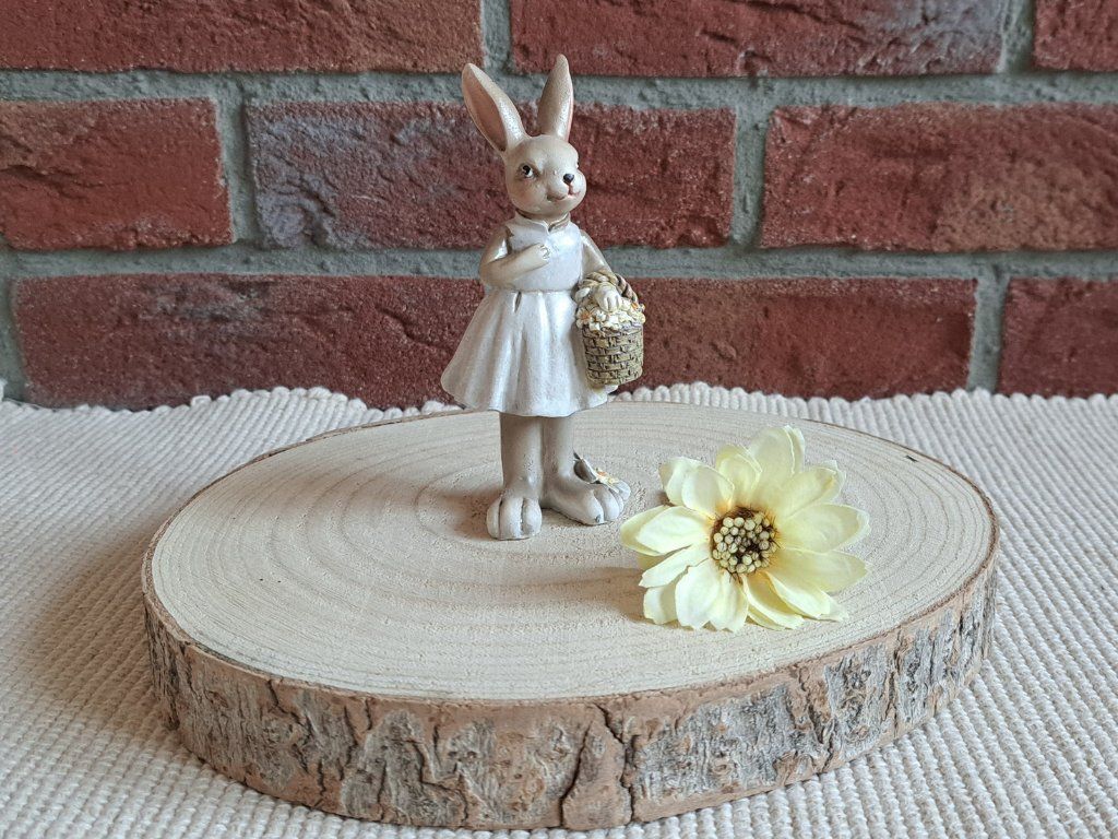 Přineste do svého domova velikonoční atmosféru s tímto půvabným zajíčkem. Perfektní na stůl, poličku nebo zahradní aranžmá.