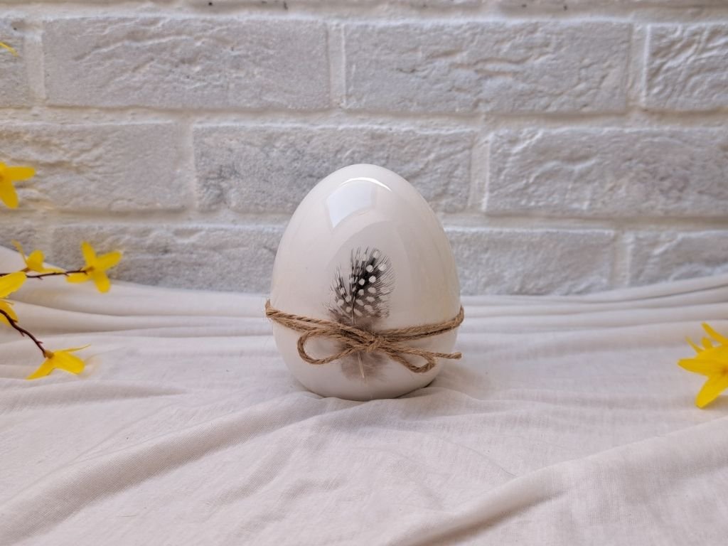 Porcelánové vajíčko s peřím | 11,5 cm